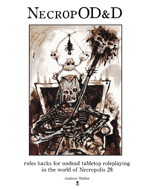 NecropOD&D is a 20 page set of rules making significant changes to Original Dungeons & Dragons, drawing primary inspiration from the skirmish miniatures game Necropolis28, as well as The Arduin Grimoires and early Gamma World.